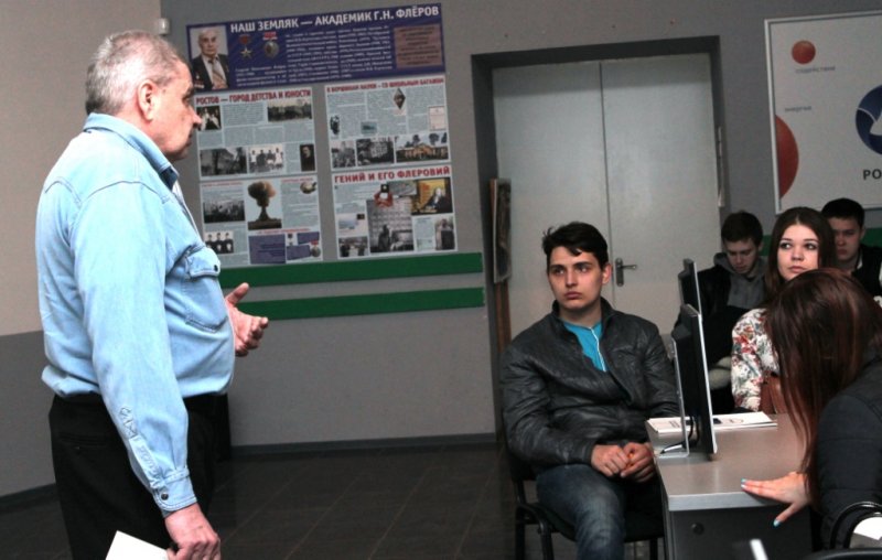 В информационном центре по атомной энергии 8 апреля прошла первая лекция из цикла «Пять вех Победы». Лекторий посвящен 70-летию Великой Победы, читают лекции члены Клуба ветеранов ракетных войск стратегического назначения. Первыми посетили лекторий студенты Донского государственного технического университета. Студентам рассказали о первых днях войны. Лектор Виктор Байдиков, доцент кафедры тактики военных войск Ростовского военного института ракетных войск (Ростовский ВИ РВ) сделал акцент лекции на события происходившие г. Ростове-на-Дону.