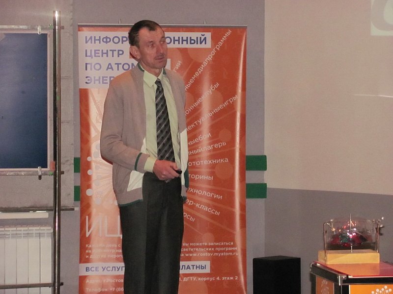 В рамках Всероссийской недели высоких технологий 10 марта в информационном центре по атомной энергии г. Ростова-на-Дону состоялся интерактивный урок по альтернативной энергетике, который провел преподаватель Донского государственного технического университета Василий Савченко.