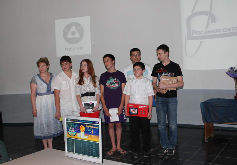 Всем участниками команды-победителя были приготовлены ценные призы. Но чтобы их получить, ребятам необходимо было ответить на каверзные дополнительные вопросы, которые им задавал директор информационного центра Алексей Боровик. Успешно справившись и с этим заданием, ребята получили в подарок планшетные компьютеры, электронные книги и рамки. А команда школы № 34, подготовившая, по мнению жюри, лучшую презентацию, получила в подарок большую корзину апельсинов и настольную игру «Ядерный ренессанс».