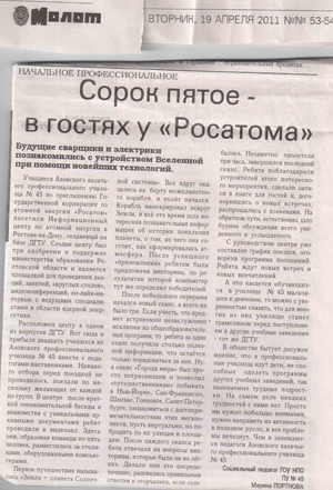 Сорок пятое — в гостях y «Pосатома»Общественно-политическая газета Ростовской области «Молот»
